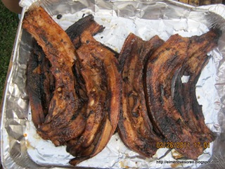 During our recent Team Building at Tagaytay City, we cooked our own food which consists of the usual: “Inihaw na Tilapia” (grilled Tilapia) and pork barbeque. In the morning, we had Champorado (chocolate rice-pudding), fried rice (left over of the previous night’s dinner), “Itlog na Maalat” (salted eggs), and fried Danggit (a local fish that was sun-dried).